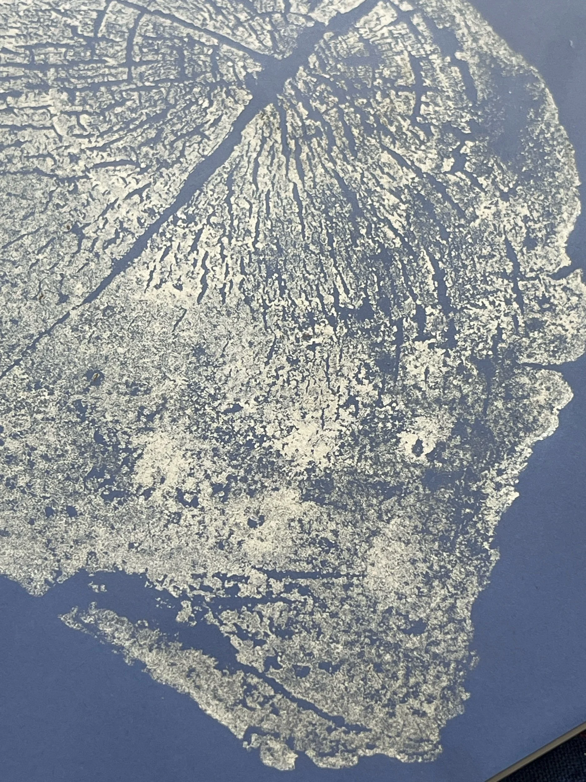Handmade Acer Saccharum tree ring print made with ethically sourced, already fallen sugar maple tree. Printed in silver acrylic on blue cardstock.